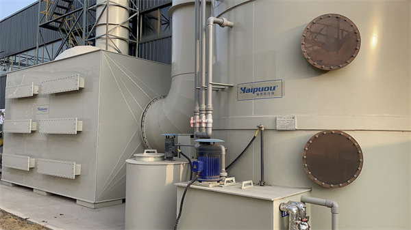 二級和一級噴嘴的密度、噴液壓力和吸收酸性(堿性)氣體的濃度范圍都不一樣。噴淋段和填料段的兩相接觸過程也是傳熱和傳質(zhì)的過程。并控制空塔的流速和停留時(shí)間,以保證整個過程的穩(wěn)定。排氣處理塔體上部為除霧段,氣體中的吸收液霧滴在此被清除,經(jīng)過處理的潔凈空氣由廢氣凈化塔上的排氣管排放到大氣。
