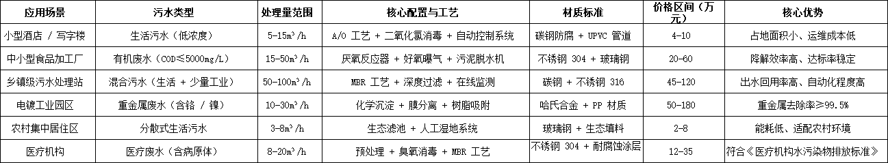 二、熱門場景污水處理設(shè)備價格表(精準版)