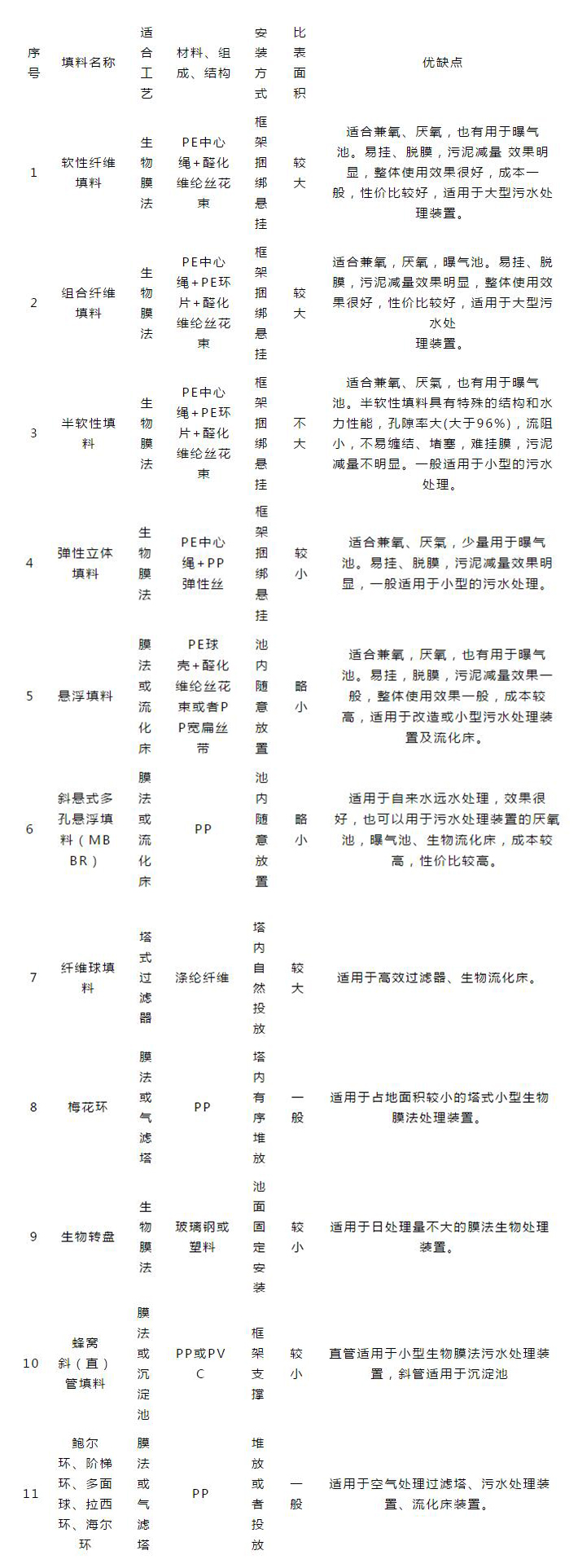 一、污水處理填料分類及用途