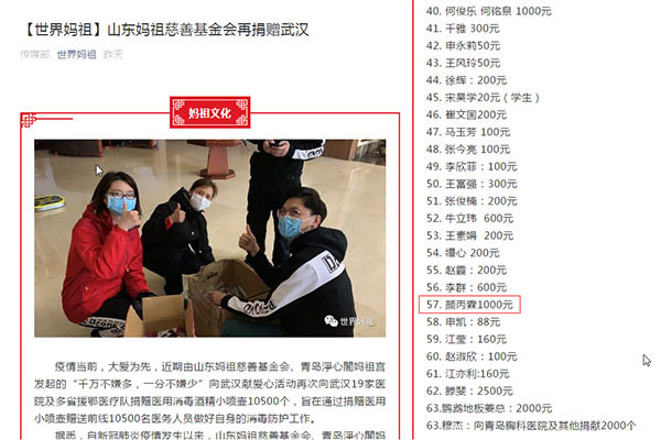 早在1月29日,疫情發(fā)生之時(shí),山東媽祖慈善基金會、青島凈心閣媽祖宮就以發(fā)揚(yáng)媽祖“立德、行善、大愛”的精神為原則,積極響應(yīng)政府的號召,加入到這場“戰(zhàn)疫”之中,用自己的行動(dòng)助力醫(yī)護(hù)人員。